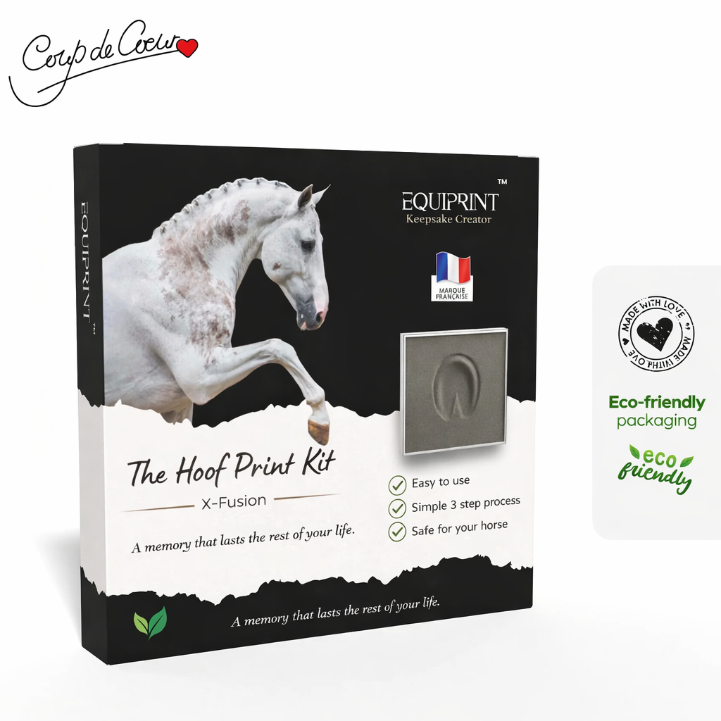 The Equiprint™ Hoof Print Kit is designed to capture your horse’s hoof print with precision and delicacy. At the heart of the process lies X-Fusion foam, an innovative high-density memory foam formulation.